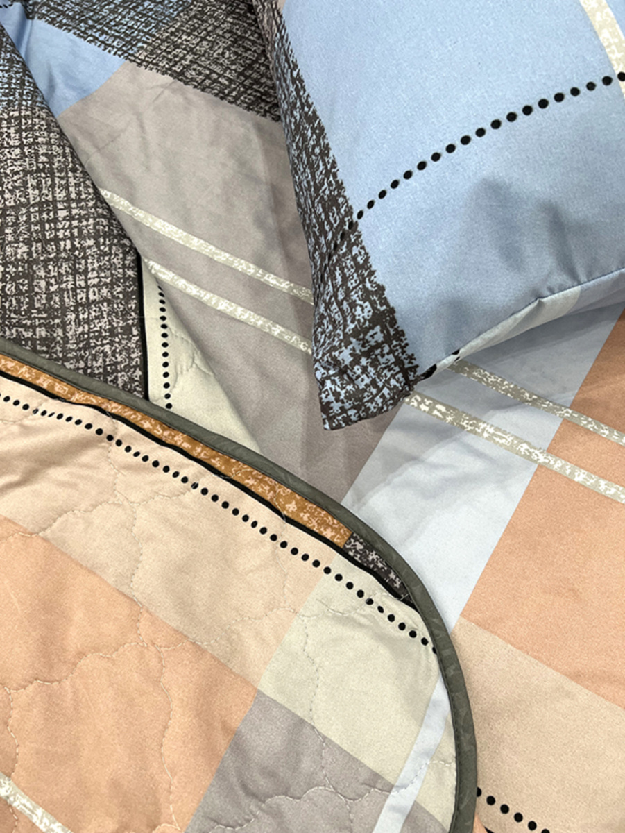 Уникальность набора в том, что в него входят: наволочки, простыня и легкое всесезонное одеяло. Это современное и очень удобное решение, которое идеально подходит тем, кто хочет быстро застилать кровать. Покупая постельные комплекты с одеялом вы экономите на покупке отдельного одеяла. Так же одеяло можно использовать как покрывало. Комплект легко стирается в обычной машине. Состав комплекта: Полисатин 90 г/м2, одеяло - наполнитель синтепон 150 г/м2.