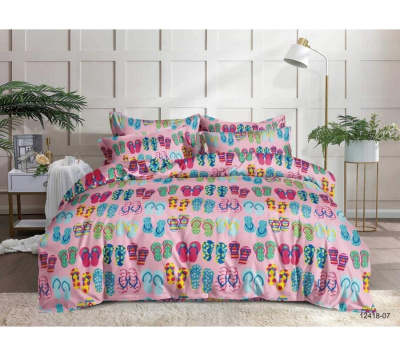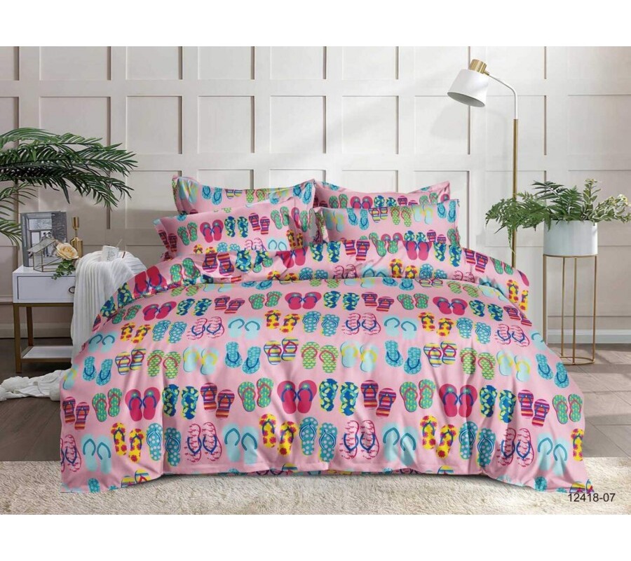 Комплект постельного белья со шлепками на розовом фоне - забавный дизайн, погружающий в атмосферу пляжного отдыха, отпуска на море прямо не выходя из вашей спальни.